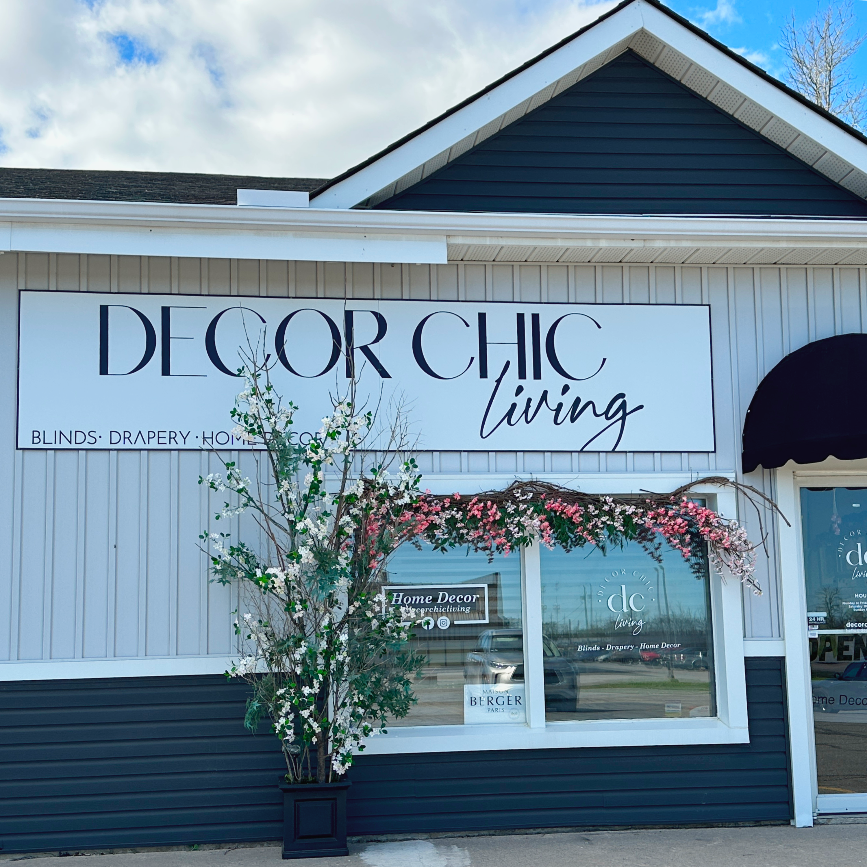 Decor Chic Living window and blind showroom and home decor store. Shop in-store in Belleville, Ontario or online across Canada.