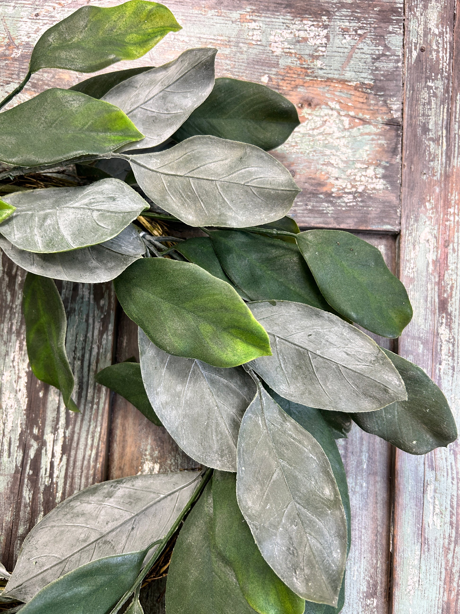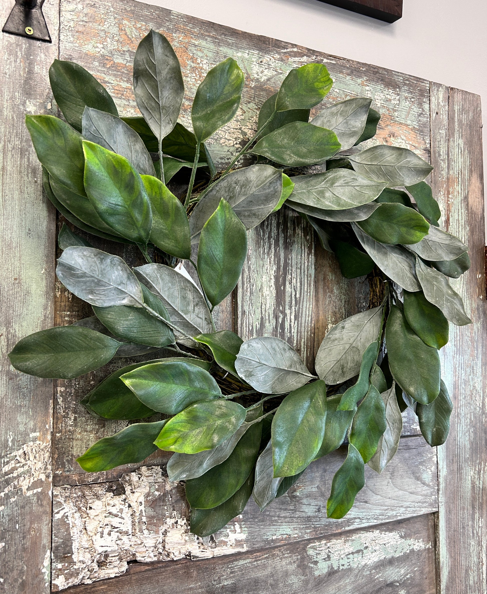 Magnolia Leaves on a Grapevine Wreath. Hang as is or add seasonal faux florals to spruce up your door or entrance.
