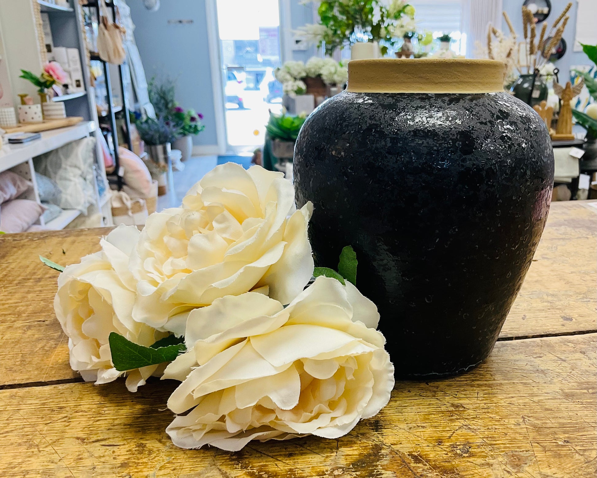 6β black vase shaped like a traditional water urn offering a vintage feel