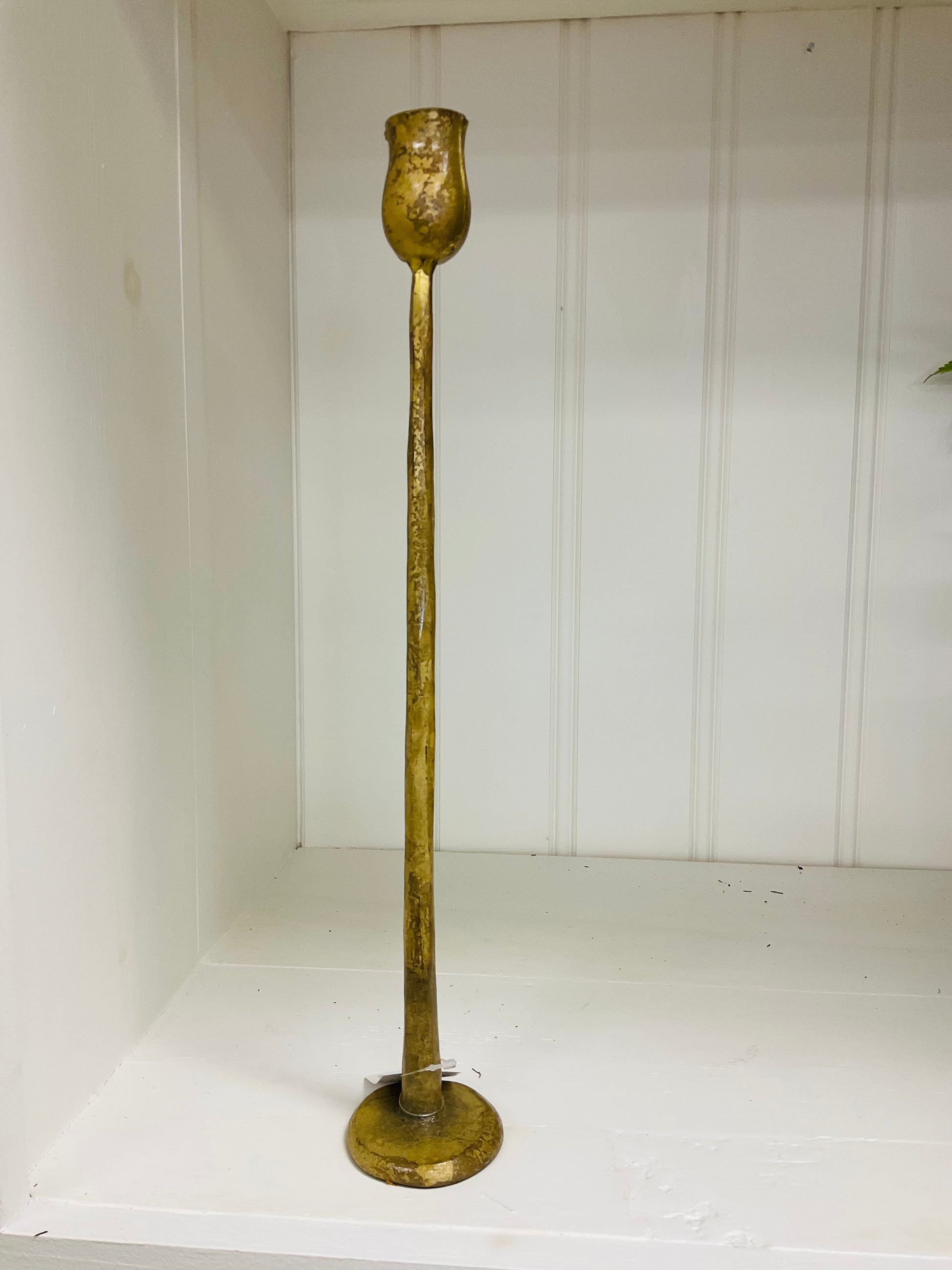 These taper holders are both classic and vintage. Antique gold colour and available in 3 sizes. Add candles to dress up your dinner table or use as an accent without.