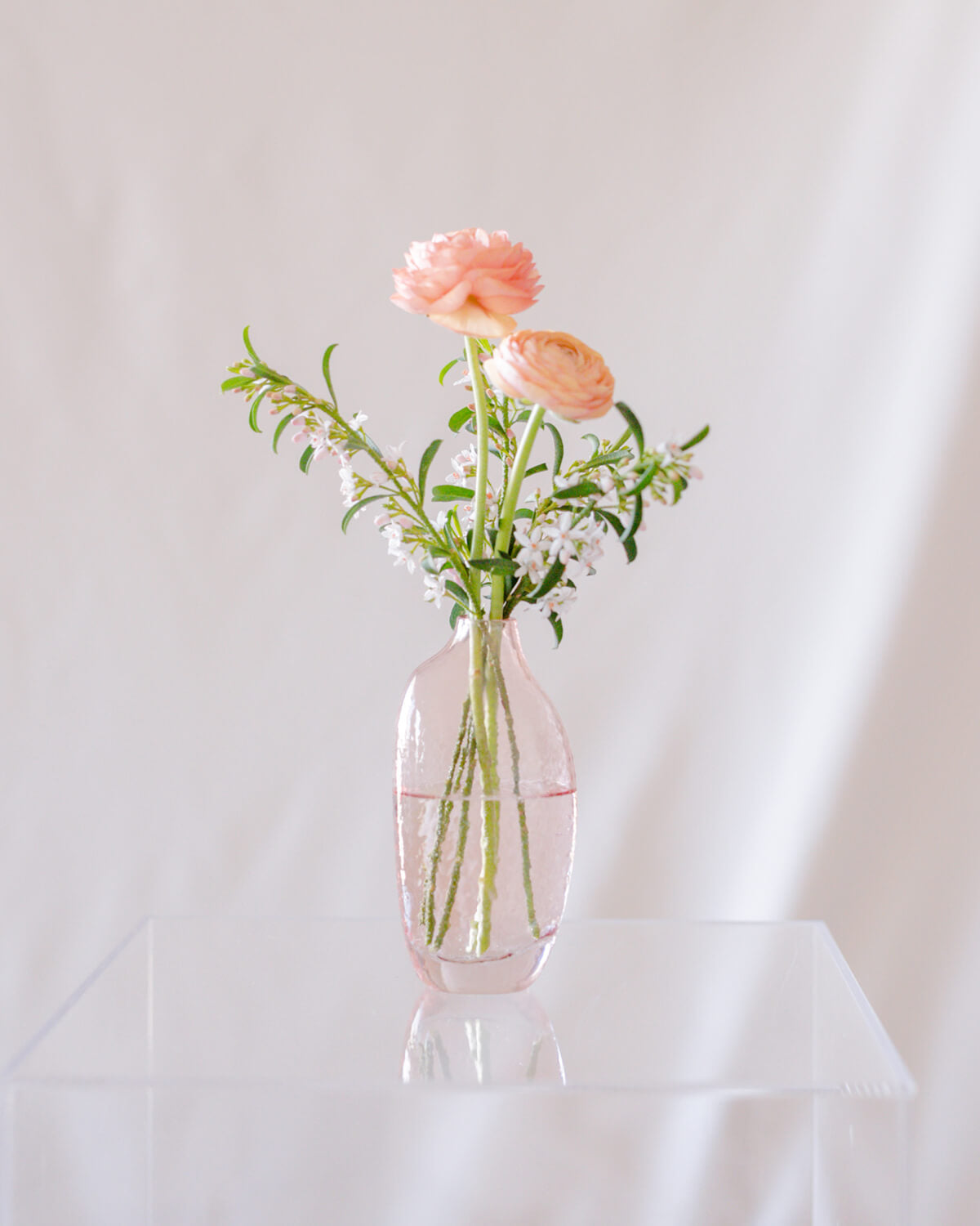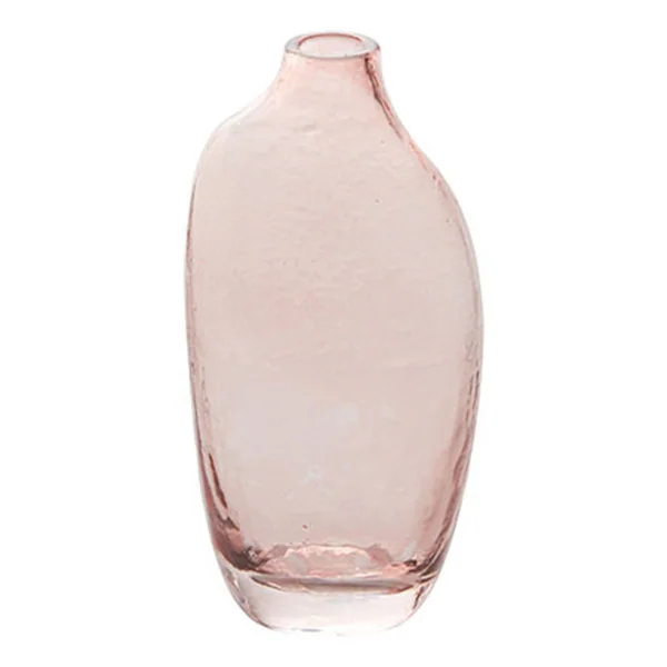 Pretty pink textured glass gives these vases character, charm and beauty. Add a sprig of leaves and a pretty bloom and set anywhere in your home. Stands 6β h