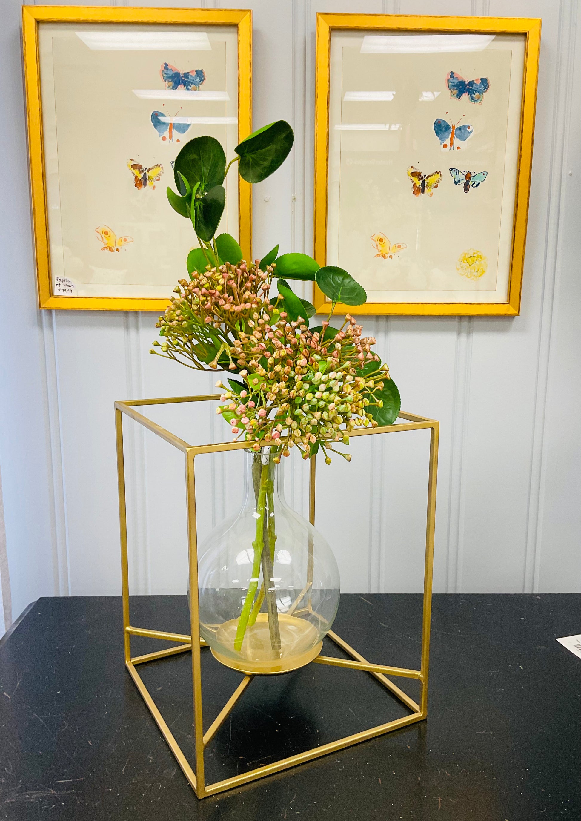 Brushed Gold Framed Glass Vase