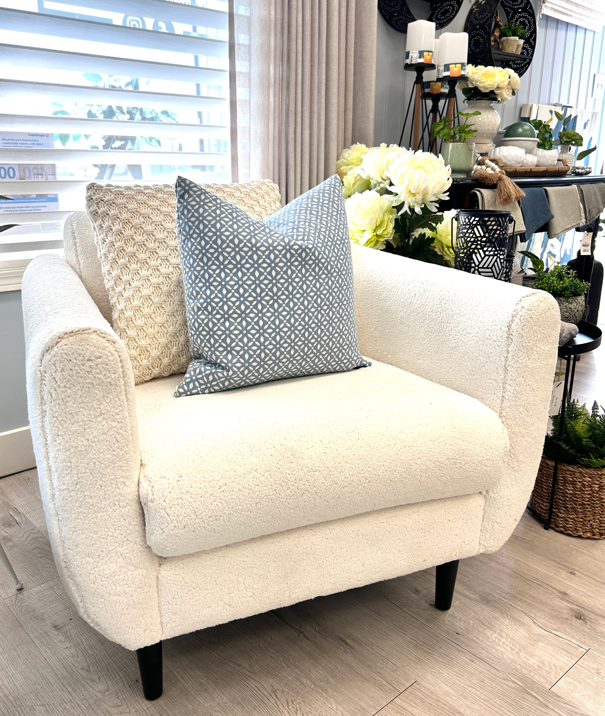 A small print cushion is a must have for any space, its helps to show off the really pretty ones! The perfect accent pillow for any room