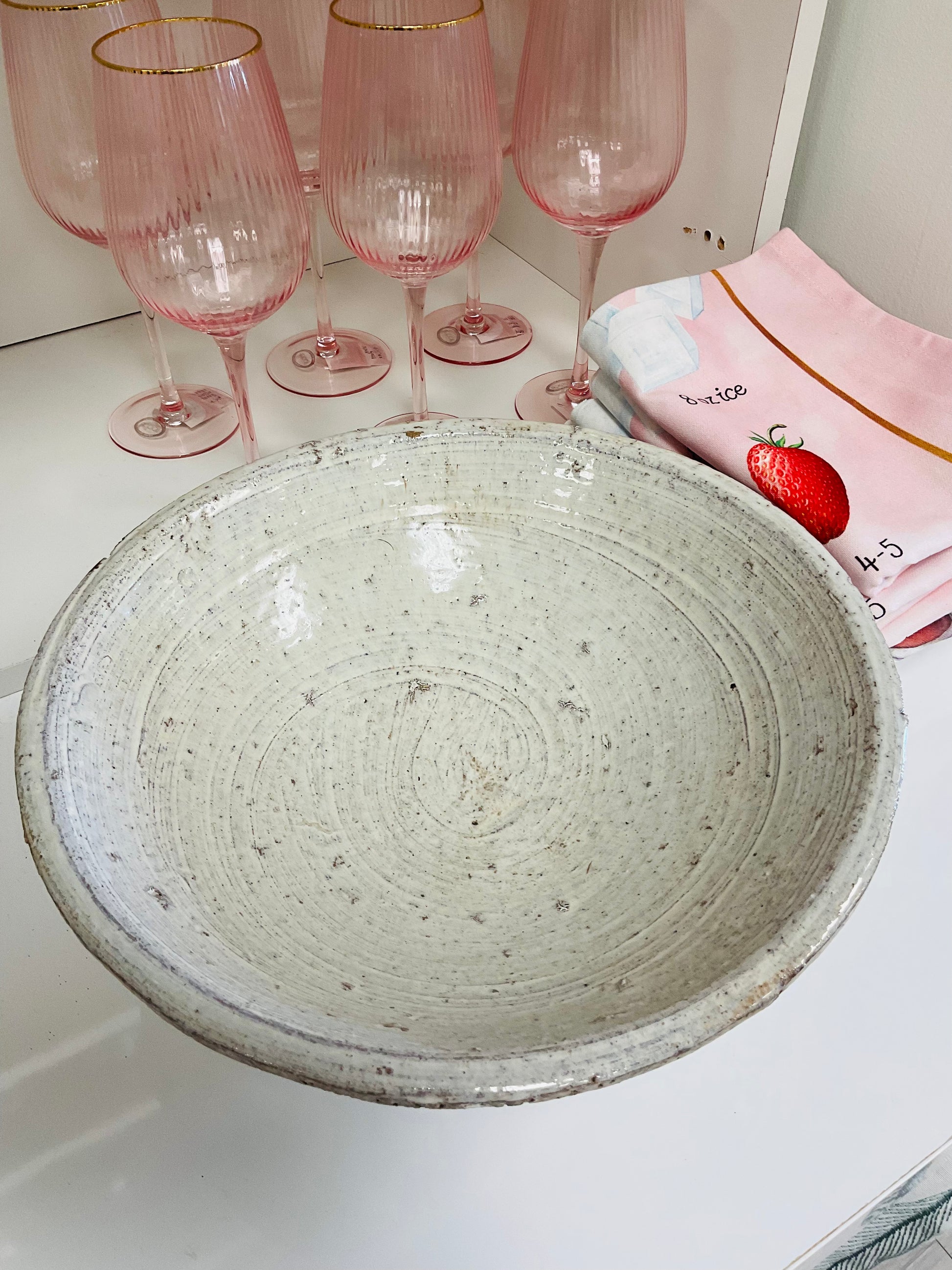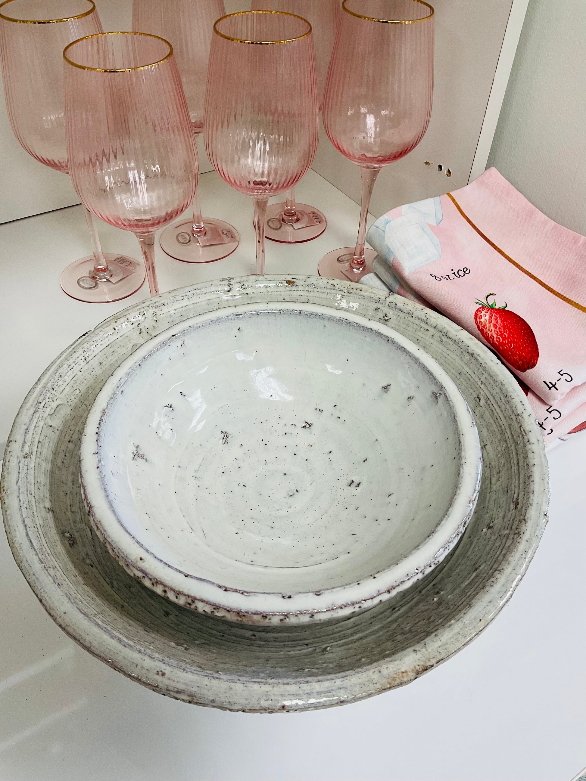 Earthy, textured divvy bowl is a beautiful addition to your home decor. Large measures 12” in diameter and 3.75” in height. Small measures 8.75” d X 3” h. Perfect for any room in your home.
