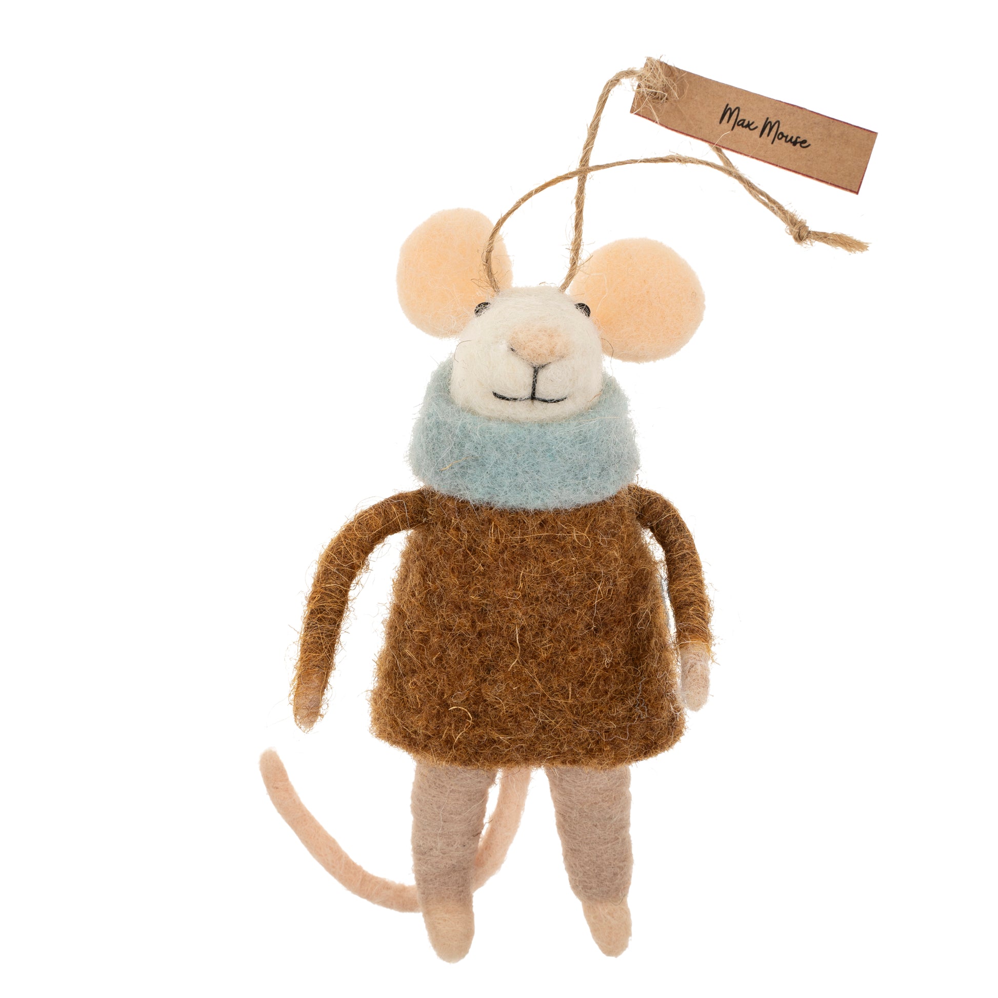 These felt ornaments are made from soft wool/polyester felt and dressed in adorable outfits. These cuties are charming on the tree, on wine bottles, or sitting on the shelf supported by their wire tails. These ornaments are fashioned using the ancient technique of felting to create festive animals. Perfect for Christmas ornaments and year round collecting.