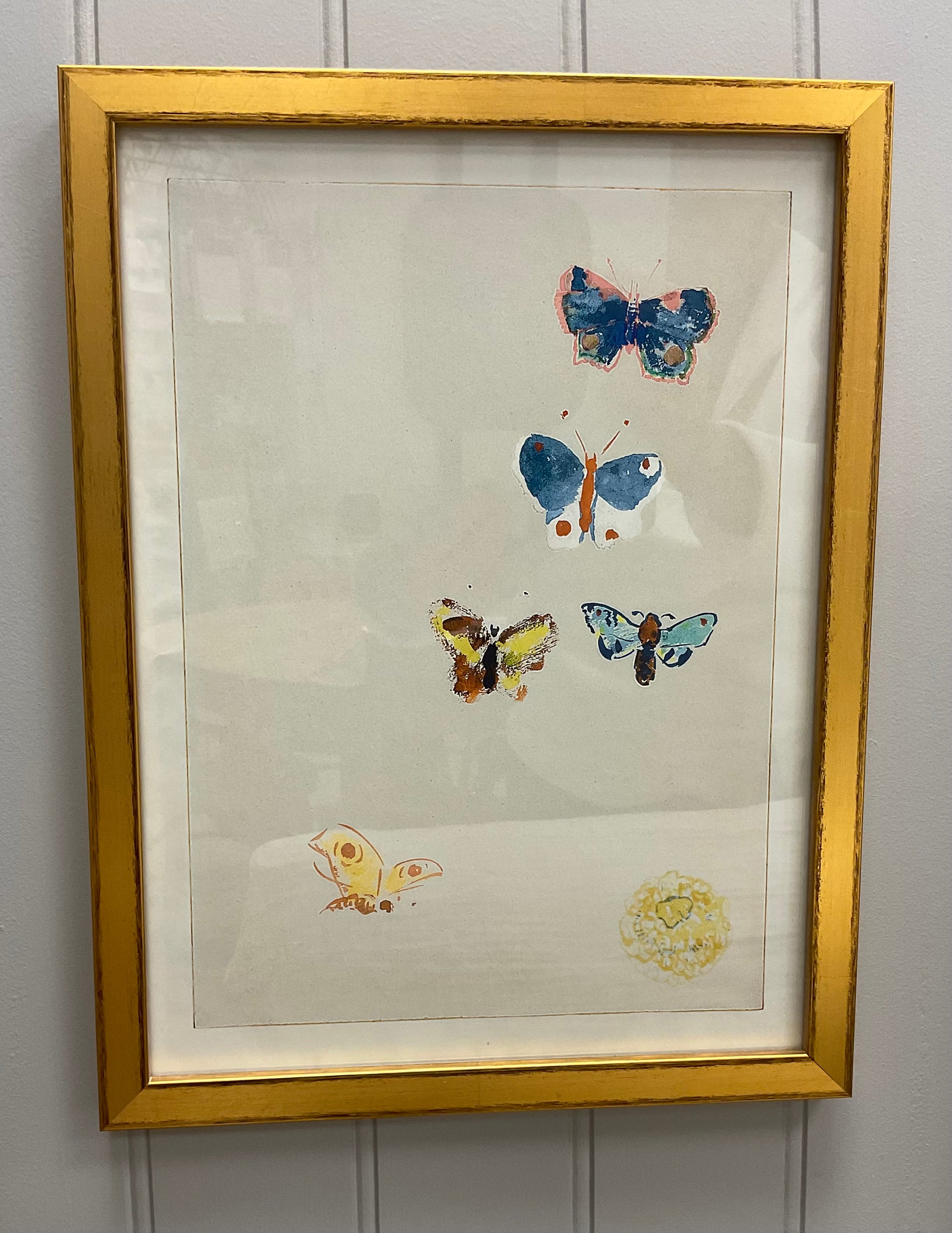 A beautiful, fresh watercolour of a stunning collection of colorful butterflies and flowers by Odilon Redon. Redon was known for his surreal paintings created in the early 20th Century and his influence on both Surrealism and Dadaism. This piece is finished in an antiqued gold frame.