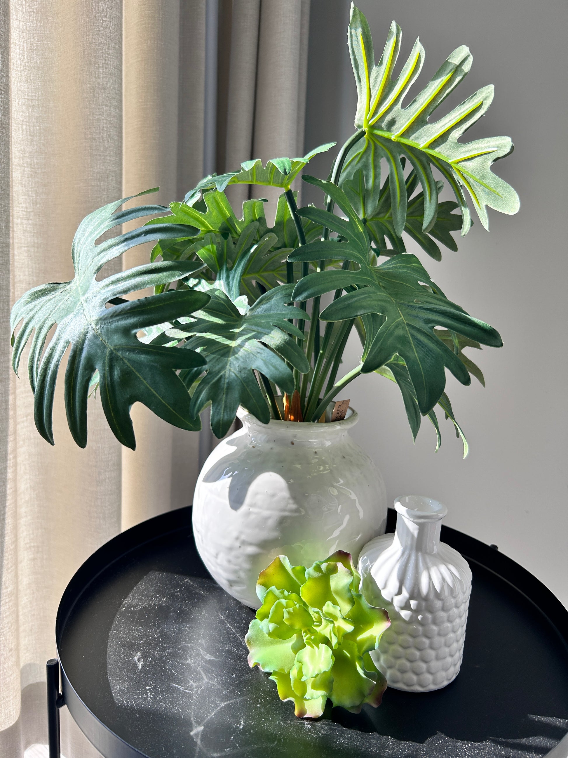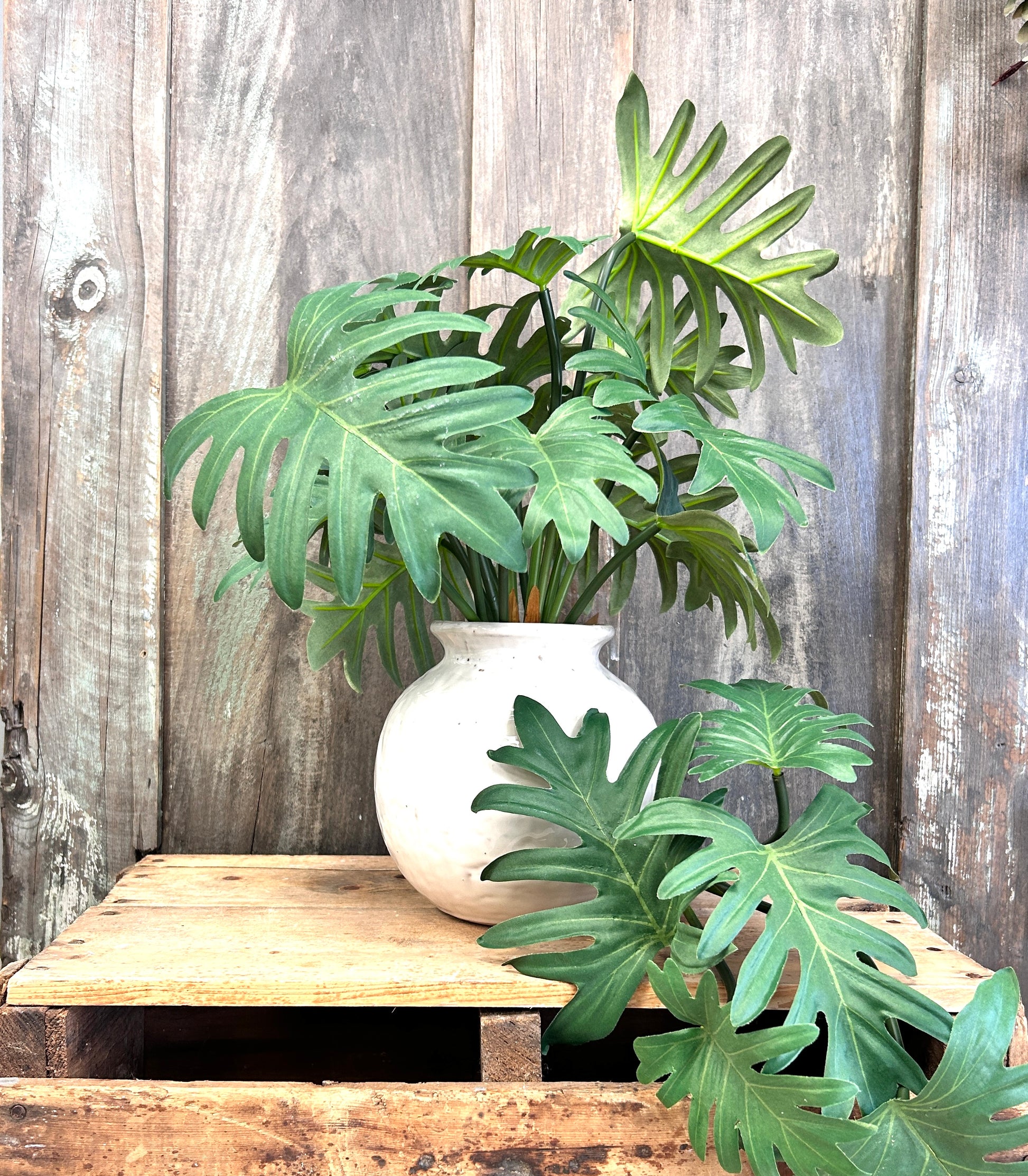 Looking for a bold statement with faux? This monstera leaf mini bush is perfect. Full with 5 stems per bundle that is will make an impression on its own or add drama to a simple arrangement.