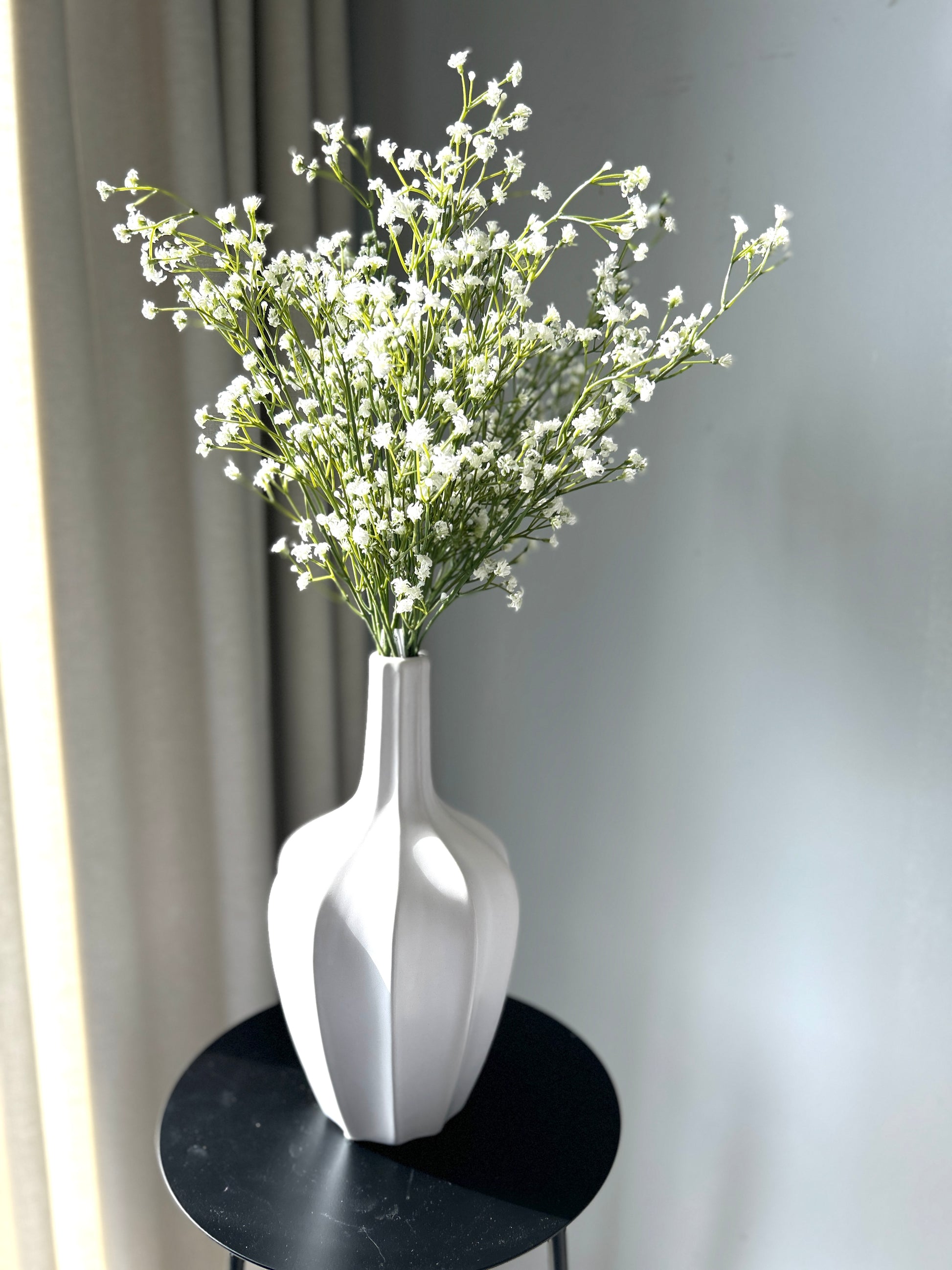 This simple ceramic white vase is a classic and a must for your faux or real florals.