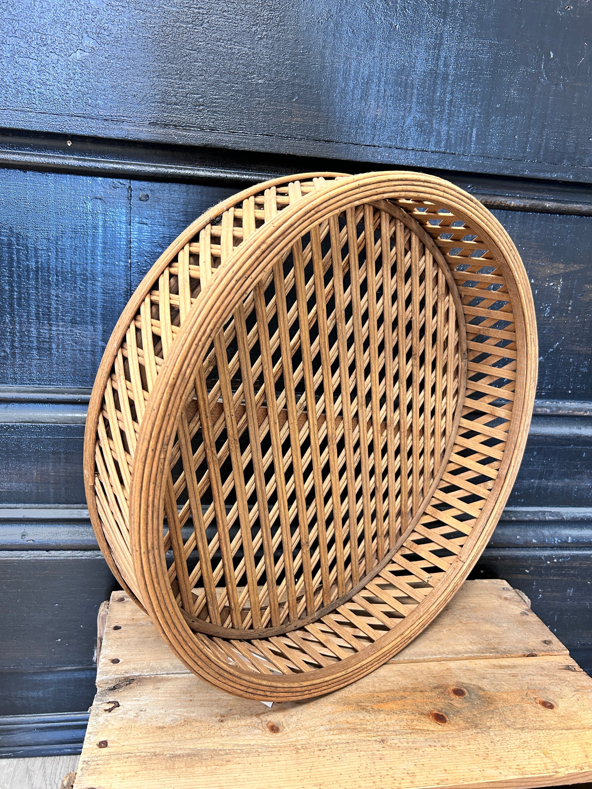 Small wooden tray is 3.5''H X 15.5'' diameter.