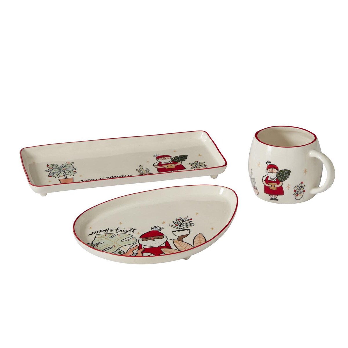Santa, plants and reindeer adorn these holiday dishes. Hand painted with a red glazed rim and shiny finish, these make a great gift set or a fun addition to your own Christmas collections.