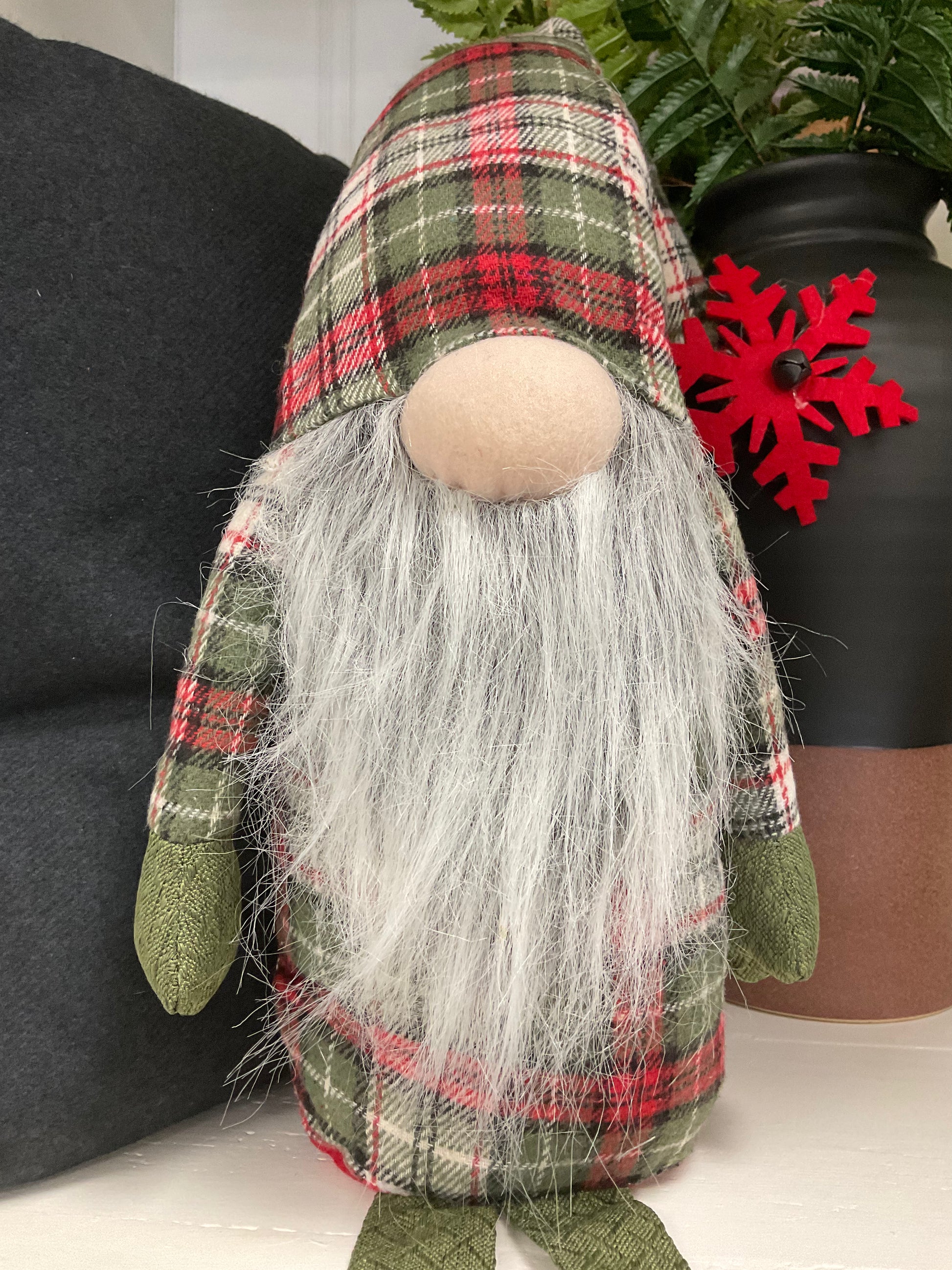 Fun and whimsical, Snowflake the holiday Gnome will sit nicely on a mantel or shelf with a weighted bottom and long dangly legs.
