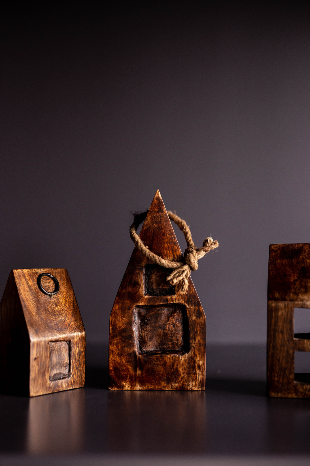 The Wooden Houses (Set of 6) are made from high-quality sustainable wood. These houses are both environmentally friendly and durable. The natural variations in the wood ensures that no two are alike, showing its unique rustic charm. Bring on the cozy and natural feel to your living room by styling these wooden houses. Each set includes five unique houses, perfect for decorating shelves or tabletops. Whether styled together as a set or spread throughout your home, these charming wooden houses bring warmth and character to any space. Their timeless design makes them ideal for transitioning from holiday decor to year-round accents.